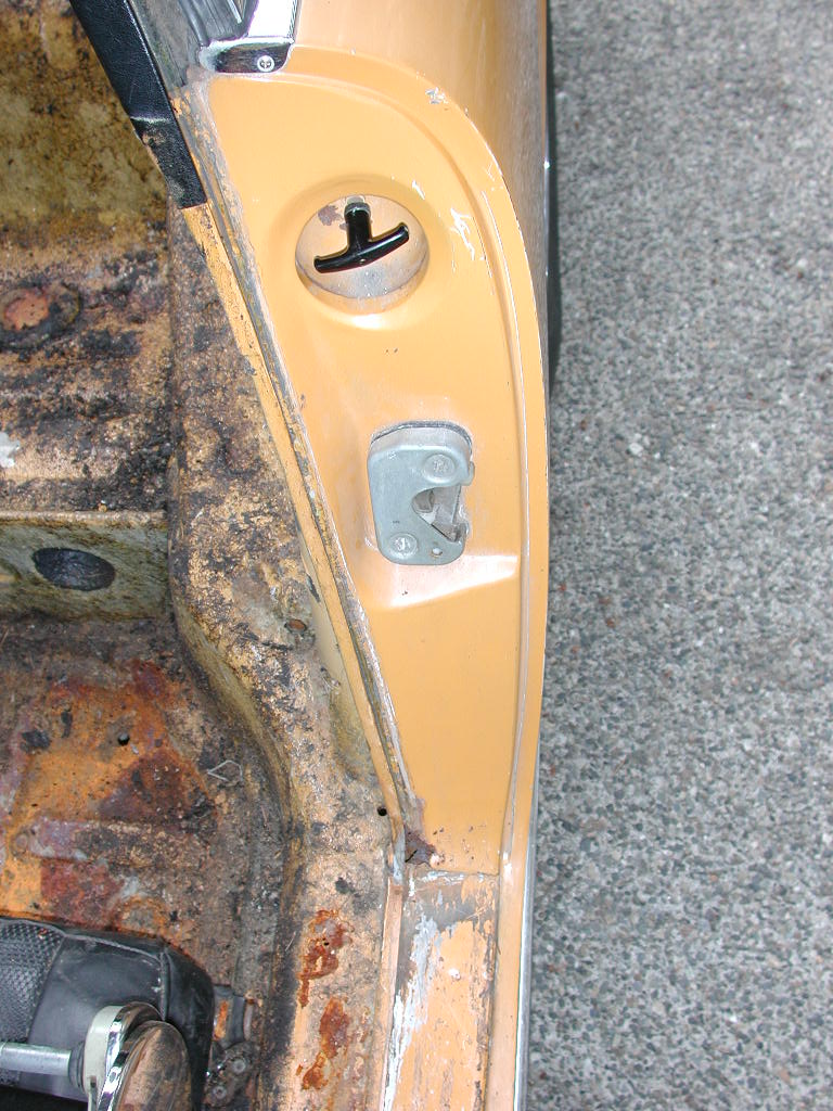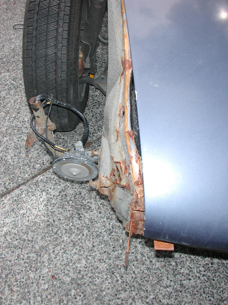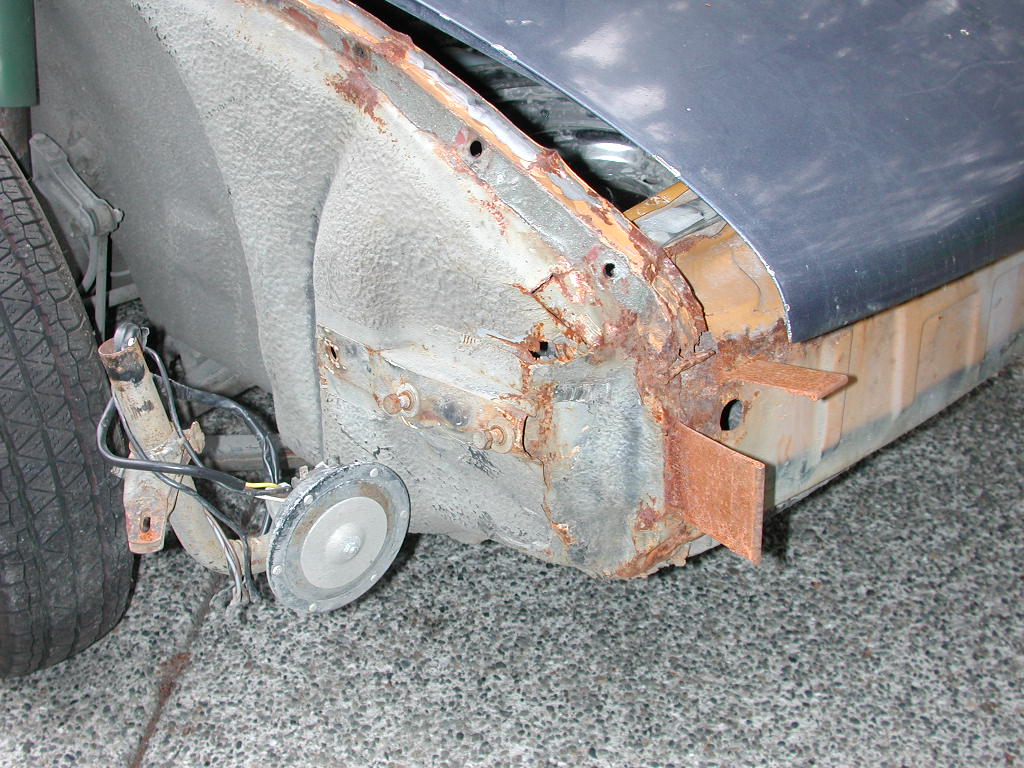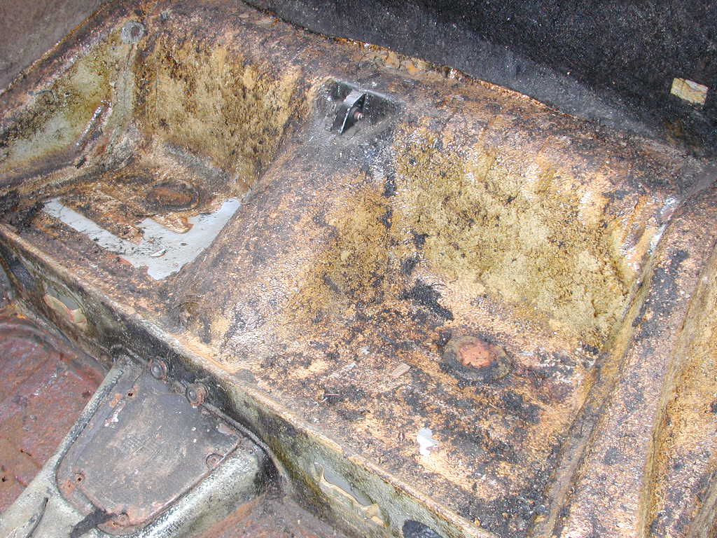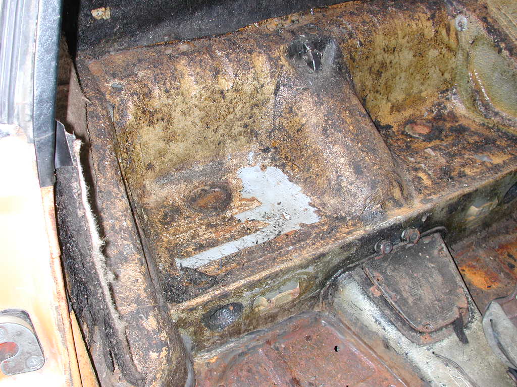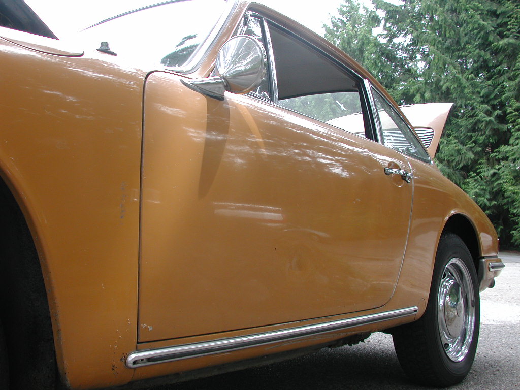 Entry: 7/11/05 - You've got to be wondering what I was thinking when I bought a car with this much rust in it! I looked this car over many times and saw that the rust was only in water pooling areas and not the more insidious type caused by winter road salt. I wanted to try my hand at sheetmetal fabrication, invest in a better MIG welder and teach myself the craft using this car as a learning tool. My basic thoughts were if the bodywork turned out really good (those pictures follow), I would take this restoration to a higher level than just driver. Little did I know that I would eventually challenge myself to learn Super-90 engine rebuilding as well. These are the photographs I took of my 912 the day it was towed home from Ballard. I was using my old 3.4 megapixel Nikon digital camera so the photographs at 1024 x 768 pixels came out somewhat smaller than my current camera. I tried to focus on documenting the areas needing rust or collision repair and show the problems with door gaps and such. The interior of the car was already stripped out so assessment of the rust in the car was easy to do and I was very pleased by the quality of the original chrome, glass, instruments and toolkit. I was looking for a project to develop my sheetmetal fabrication skills with and decide if tackling a 356 Porsche restoration on my own would be a realistic. I love the early 912 and its almost identical materials and finish it shares with the last of the 356C model manufactured in parallel with it in Zuffenhausen at the time. Since then I have found and purchased an extremely well-preserved 1964 Porsche 356C and plan to restore it after finishing this 912.